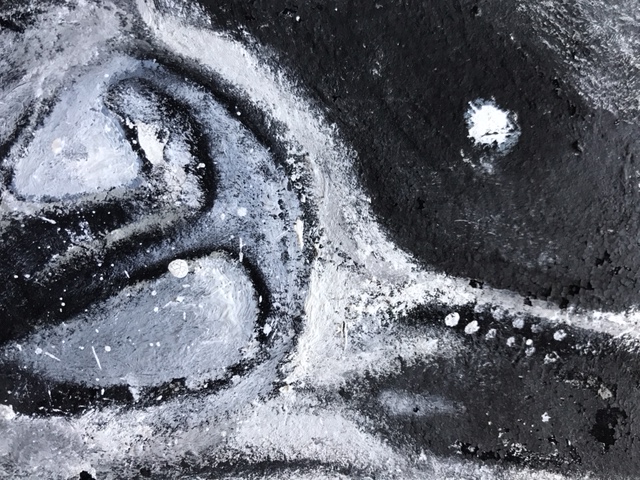 His feet rise above tar-night shadow