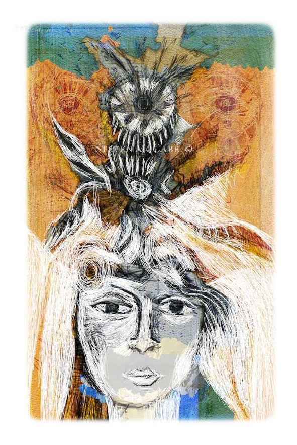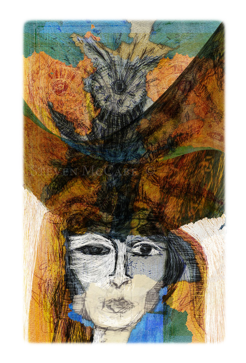 A summer art project: Sculpture, ‘The Cosmos’ created with youth. You are seeing half of the sculpture. Plaster gauze, rope, acrylic paint. Also balloons. I don’t know why exactly I superimposed this image over a photograph of Harrison Street. Perhaps curvilinear shapes address time. Or the shapes are somehow ancestral. Perhaps such ‘continual vegetal designs’ balance the angularity of buildings while adding human dimensions of roundness and multi-dimensionality. I don’t know. It just seemed the thing to do.